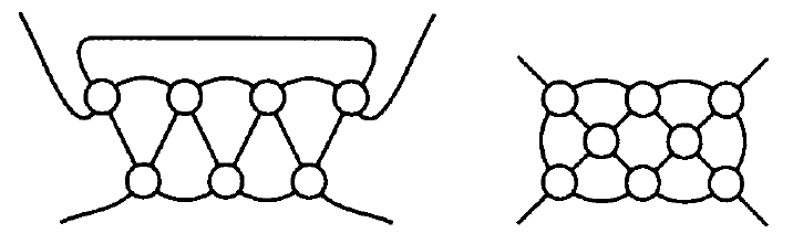 \[ \frac{\tanglecountdec}{8(2n-3)} \le \altlinkcount \le \frac{\tanglecountdec}2 \]