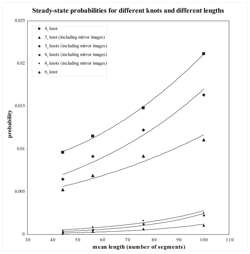 knot types and steady-state probabilities of DNA